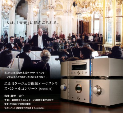 本キャンペーンは、2011年12月1日以降にマランツのプリメインアンプ「PM-11S2」「PM-13S2」「PM-15S2」、SACDプレーヤー「SA-11S2」「SA-13S2」「SA-15S2」、ターンテーブル「TT-15S1」のいずれかを購入した人の中から、応募者先着100組(200名)にエルミタージュ美術館オーケストラスペシャルコンサートのチケットがプレゼントされるというもの。
