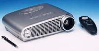 【SPEC】●素子:0.7インチ単板DMD ●画素数:786,432 ●駆動方式:カラーフィルター回転による色分解 ●投写レンズ:マニュアルズーム、マニュアルフォーカスレンズ(×1.2)、F2.9〜3.1mm f=25.5〜31.2mm ●光源:120W高圧水銀ランプ ●明るさ:1,100ANSIルーメン ●コントラスト比:500対1 ●入力端子:ビデオ1系統、Sビデオ1系統、RGB(M1-DA)1系統 ●外形寸法:229W×66H×193Dmm ●質量:1.4kg
