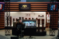 メインの展示ブースでは“ウッドコーンスピーカー”を大々的にアピール。11月上旬に発売予定の最上位機「SX-WD500」を中心に、これまでのラインナップをズラリと展示した。また研究試作品としてウッドコーンの30cmユニットやカナル型イヤホンなども展示した。こちらは「今のところ製品化の予定はない」とのこと。