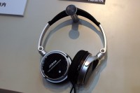 こちらも参考出品だが、ノイズキャンセリングヘッドホンも出品された。単4乾電池1本で駆動する本機は、ノイズキャンセリングのモードを2つ用意。電車などの低音を低減する「LOW」と、飛行機などの高音も混じった環境で有効な「WIDE」の2モードは、ハウジングのスイッチで簡単に切替が可能だ。発売については「1〜2ヶ月以内に市場に出したい」(説明員)とのことだ。