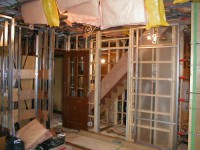 いよいよ図面をもとに施工に取りかかる。上で挙げた図面を見ると、ケーブル配管のための方法やコンセントの種類、それを設置する高さに至るまで、細かく指示が書き込まれているのがお分かりだろうか。