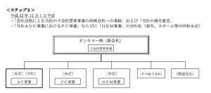 その後12月1日に現在のオンキヨーが会社分割を行い、PC事業とOEM事業をそれぞれ分社化。現在のオンキヨーやその子会社とともに、持株会社の子会社として事業運営にあたる。また、新会社となる持株会社は子会社の管理事業に特化する方向で検討している。ただし、この段階のスキーム等の詳細は現段階で未定となっている。