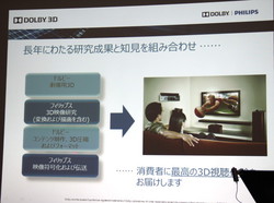 Dolby Japan(株)は本日記者向けに、蘭Philipsの協力を得て開発した3D映像技術スイート「ドルビー3D」の説明会を開催した。