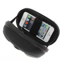 本体は90W×166H×85Dmm、質量約300gのコンパクトサイズ。キャリングケースの形状をしており、本体内にW60×140H×10Dmm程度の大きさのスマートフォン、ミュージックプレーヤーを格納して、マジックテープのベルトを締めてセット。本体外側のスピーカーから音楽を再生して楽しめる。オーディオ入力は3.5mmステレオミニ端子。本体の外側にも2本のマジックテープ式のベルトを備え、ベルトストラップや自転車のハンドルにスピーカーを付けることもできる。