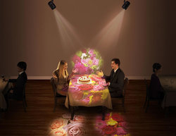 プロジェクター機能と照明機能を組み合わせることにより、例えば、対象物を明るく照らしながらその周辺のスペースに映像や商品説明を投影したり、イルミネーションのような動きのある照明光で、展示商品の注目度をより高めるなどといった演出が可能。