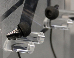 ゼンハイザーブースではまた、同社が70周年を迎えたこともあり、過去の銘機を展示してその長い歴史をアピール。1968年に発売し、世界的ヒット商品になったオープン型ヘッドホン「HD 414」、1993年に発売した世界初の赤外線デジタルヘッドホン「IS 850」、そして今年26周年を迎え、いまだ現役の人気ヘッドホン「HD 25」などが置かれていた。