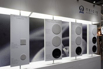その中でも、まるで音に吸い寄せられるように建築家/インテリアコーディネーターが集い、盛況となっていたカスタムインストール向けスピーカーブランド「オリジンアコースティクス」を紹介する。