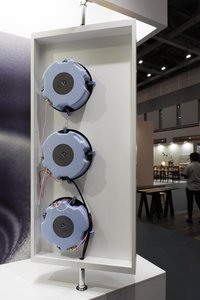 従来サイズの半分の奥行きで取り付けを可能にしたシリーズ。奥行きの制限のある天井への取り付けに最適だという。
