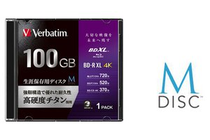 Verbatim、100年データ保存できる「M-DISC」のBD-R XL。AQUOS 4Kレコーダー等に対応