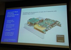 クアルコムでは独自技術「Wi-Fi SON(Self Organizing Network)」に対応するWi-Fiメッシュネットワークの展開にも力を入れている。メッシュネットワークとは、Wi-Fiルーターの親機と中継機が相互に通信しながら網目状のネットワークを張り巡らせて、宅内にまんべんなく快適なWi-Fi通信環境を実現する技術だ。シリネニ氏は「Wi-Fi SONの対応機器は設置後も通信環境に対して自律的に適応しながら最適な通信環境を提供できることが特長だ。ユーザーが複雑な知識を身に着けなくてもセキュアな通信を利用できる」と強みを挙げている。
