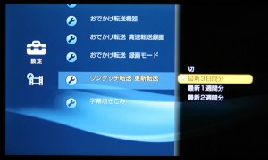 ブルーレイレコーダーのAシリーズでは、ワンタッチ転送に加えて更新転送機能を持っており、これによって、録画後に設定期間(最新3日、1週間、2週間の3パターン)のタイトルだけをモバイルデバイスに転送した状態にしておくことができる。指定期間を超えたタイトルは自動的におかえり転送して、レコーダーにコピーライセンスを戻すようになっている。