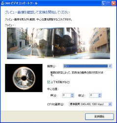 360度動画をWMVやMPEG2に変換して保存することも可能だ。その場合、WMPなどのソフトで再生できるが、細い帯状の映像となってしまう。