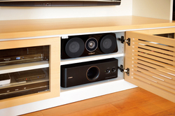 リビングの顔となる壁面収納のプロデュースもおこなっている。その甲斐あって、機器が美しくビルトインされた、きれいなリビングシアターに仕上がった。