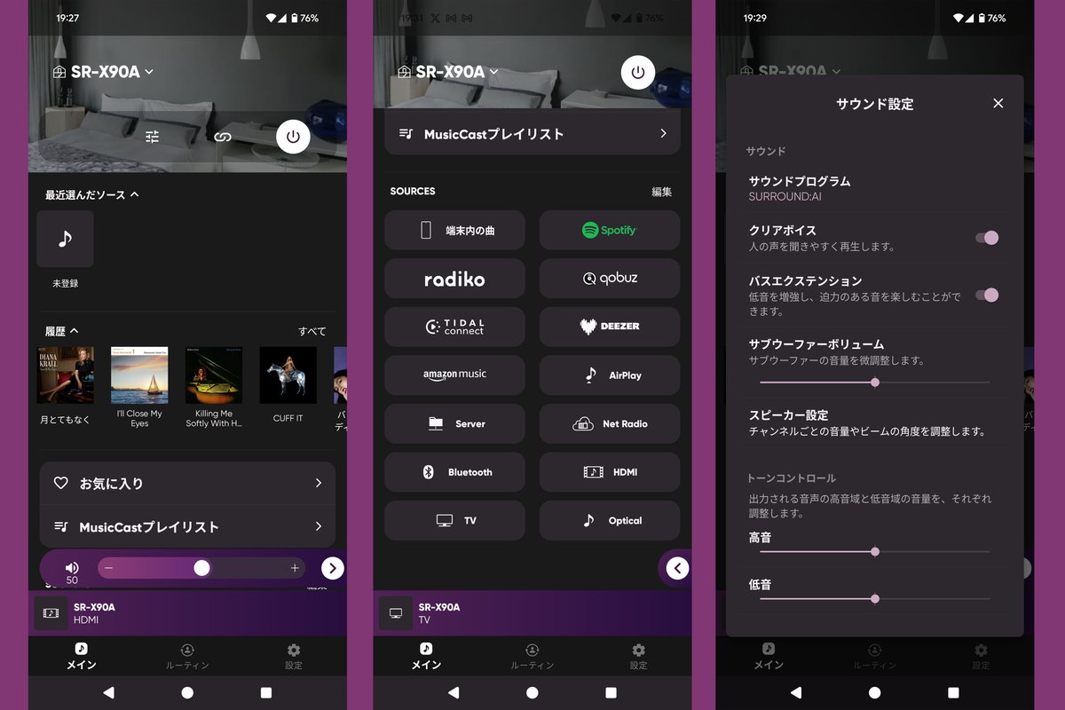 音楽再生については、「MusicCast」アプリを利用してQobuzから宇多田ヒカル「BADモード」を再生してみる。
