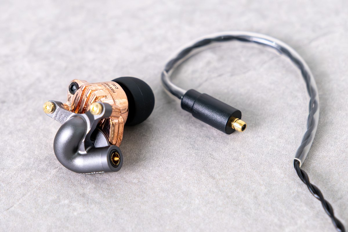 ●型式:有線接続モジュール×音響チャンバー(洋白/ジャーマンシルバー) ●ドライバー:10.2mmダイナミック型「改良型第4世代ミリンクスドライバー」 ●質量:約10g(チャンバー部)、約2.5g(有線モジュール部) ●付属品:イヤーピース(AET07 S/M/L)、4.4mmバランスケーブル、交換用精密ドライバー