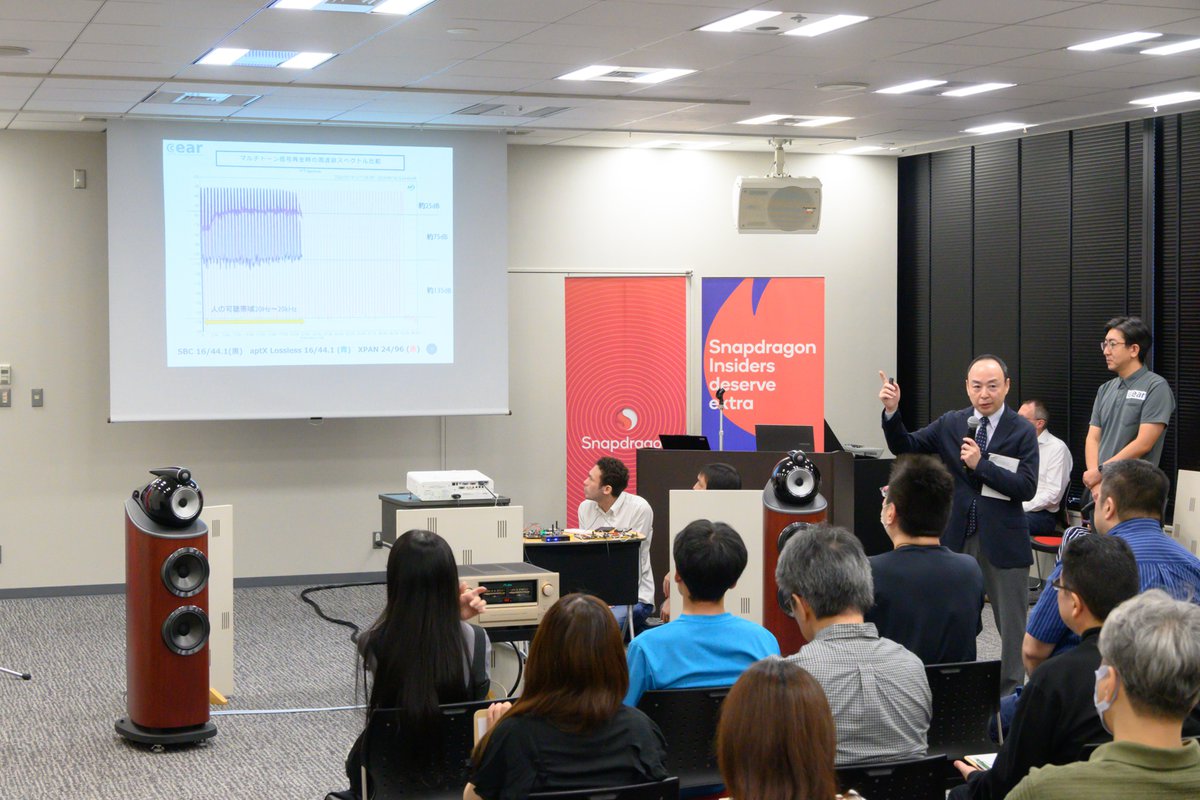 本イベントでは、Qualcomm Technologies International, Ltd.,のプロダクト・マネージメント・ディレクターのNigel Burgess(ナイジェル・バージェス)氏、プロダクト・マネージャーのCarrie Zhang(キャリー・チャン)氏が来日し、最先端の技術についてプレゼンを行うと同時に、Qualcomm XPANと従来のBluetoothの音質がどれほど違うのか、数百万円クラスのオーディオ機器を用いた聴き比べも実施した。技術解説にはクアルコムジャパンの大島勉氏も加わった。本稿ではその模様をレポートしよう。