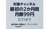 Amazon Prime Video、期間限定で5チャンネルが月額50円に。映画専門チャンネルなど