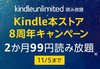 Kindle本 最大50%ポイント還元セールが実施中。読み放題も2ヶ月99円